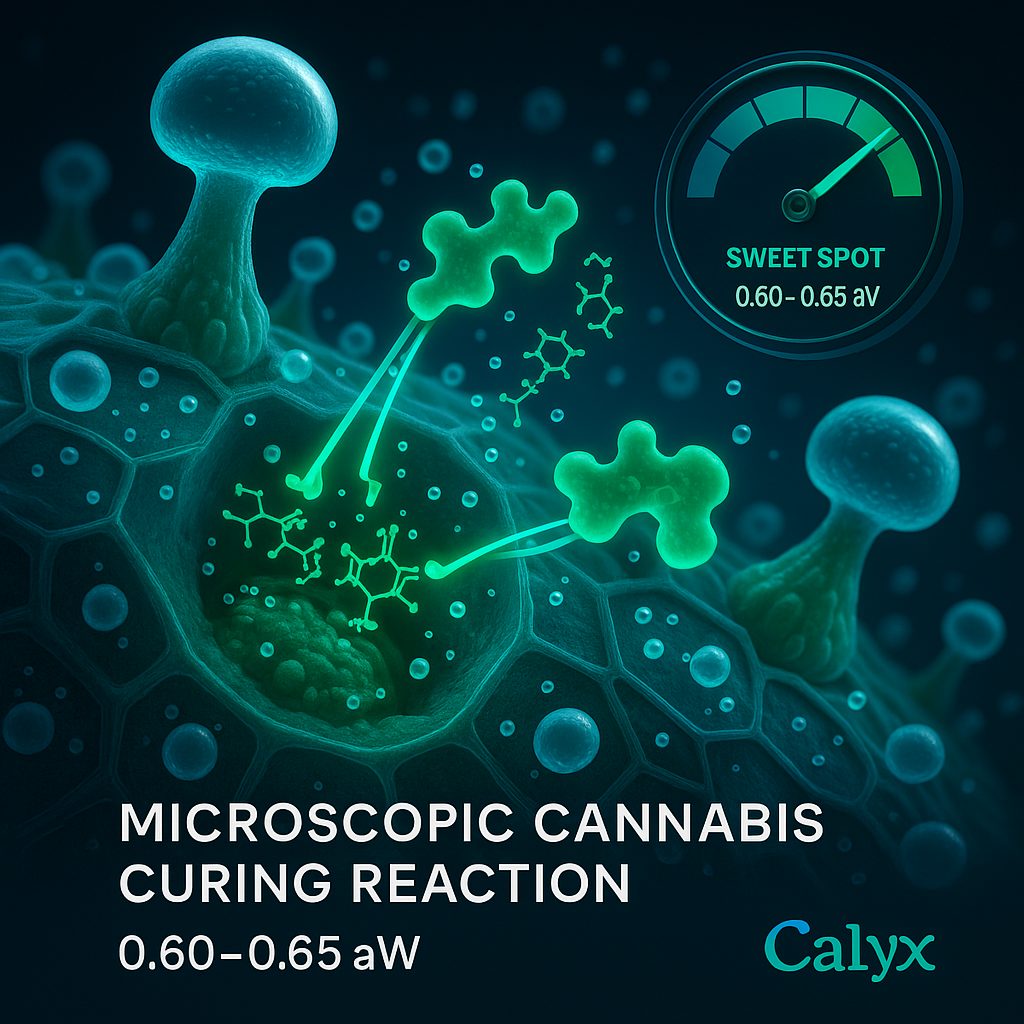 Calyx Cure's selectively permeable (breathable) film regulates the rate at which moisture and gases escape, while accurately controlling oxygen entry through passive gas permeation. This creates the ideal internal environment for terpene preservation and cannabinoid synthesis —all without manual intervention.